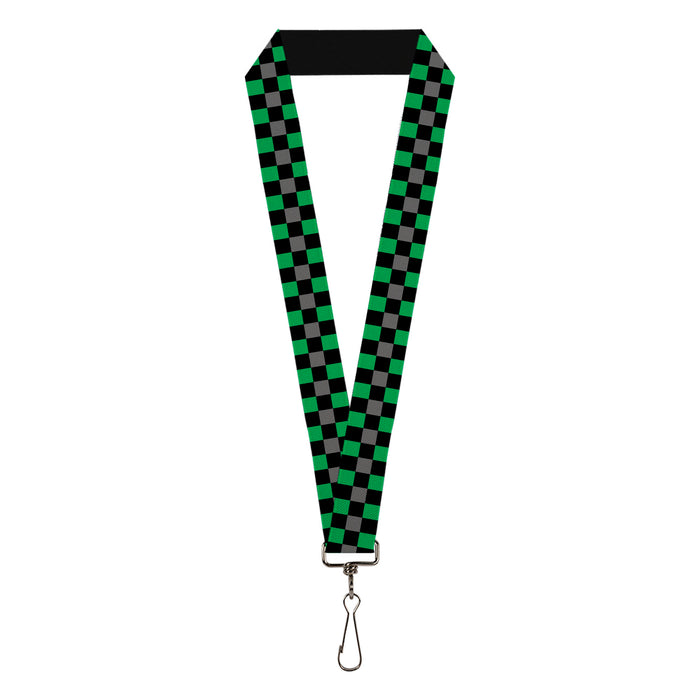 Lanyard - 1.0" - Checker Black Gray 2 Green