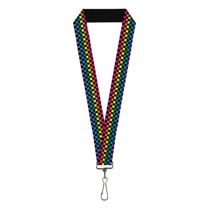 Lanyard - 1.0" - Checker Black Neon Rainbow