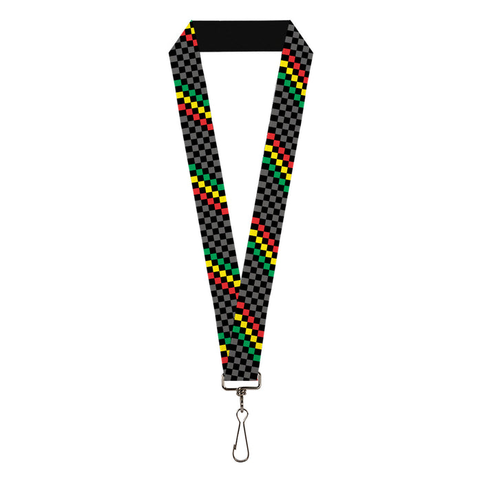 Lanyard - 1.0" - Checker Stripe Black Gray Rasta