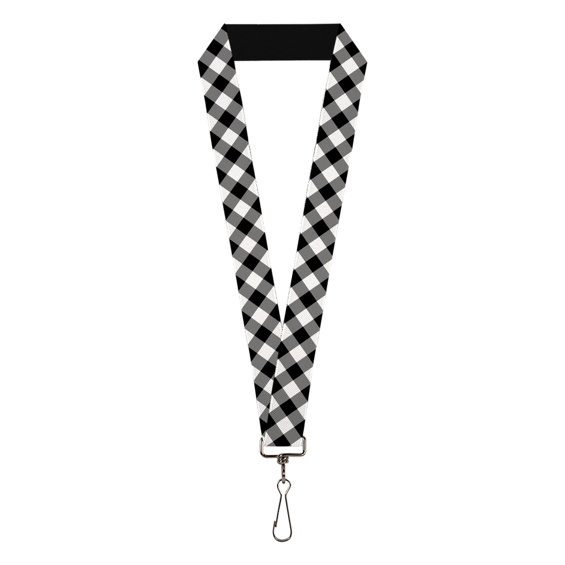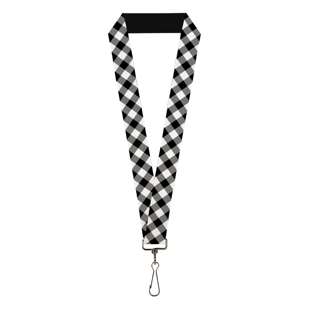 Lanyard - 1.0" - Diagonal Buffalo Plaid Black White