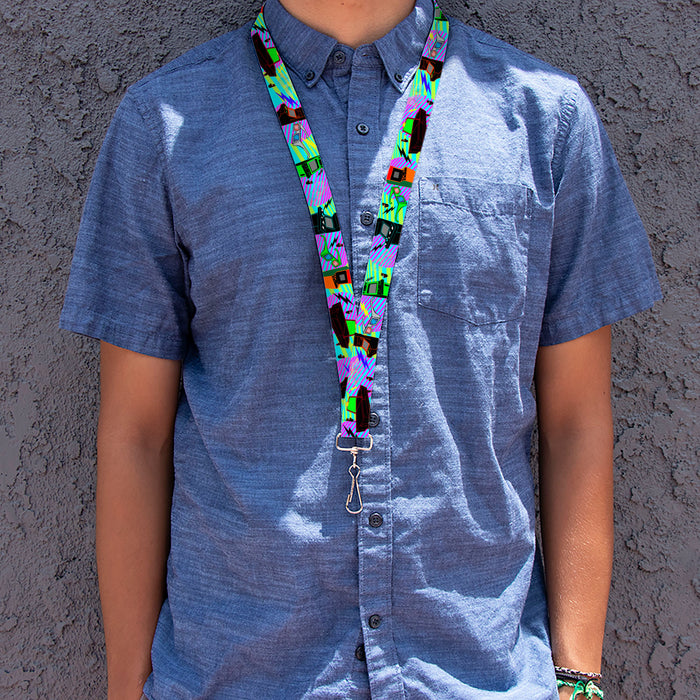 Lanyard - 1.0" - Eighties Arcade Multi Neon Stripes