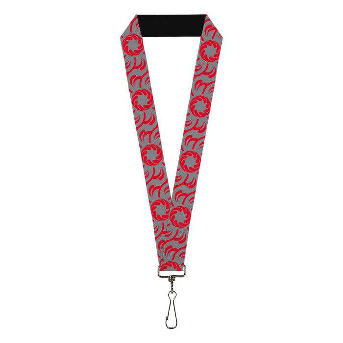 Lanyard - 1.0" - Floral Pinwheel CLOSE-UP Gray Red