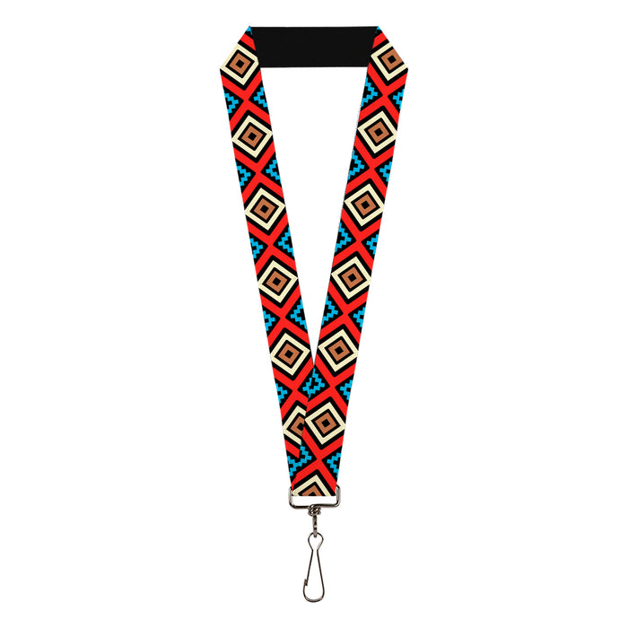 Lanyard - 1.0" - Geometric1 Black Red Tan Brown Baby Blue