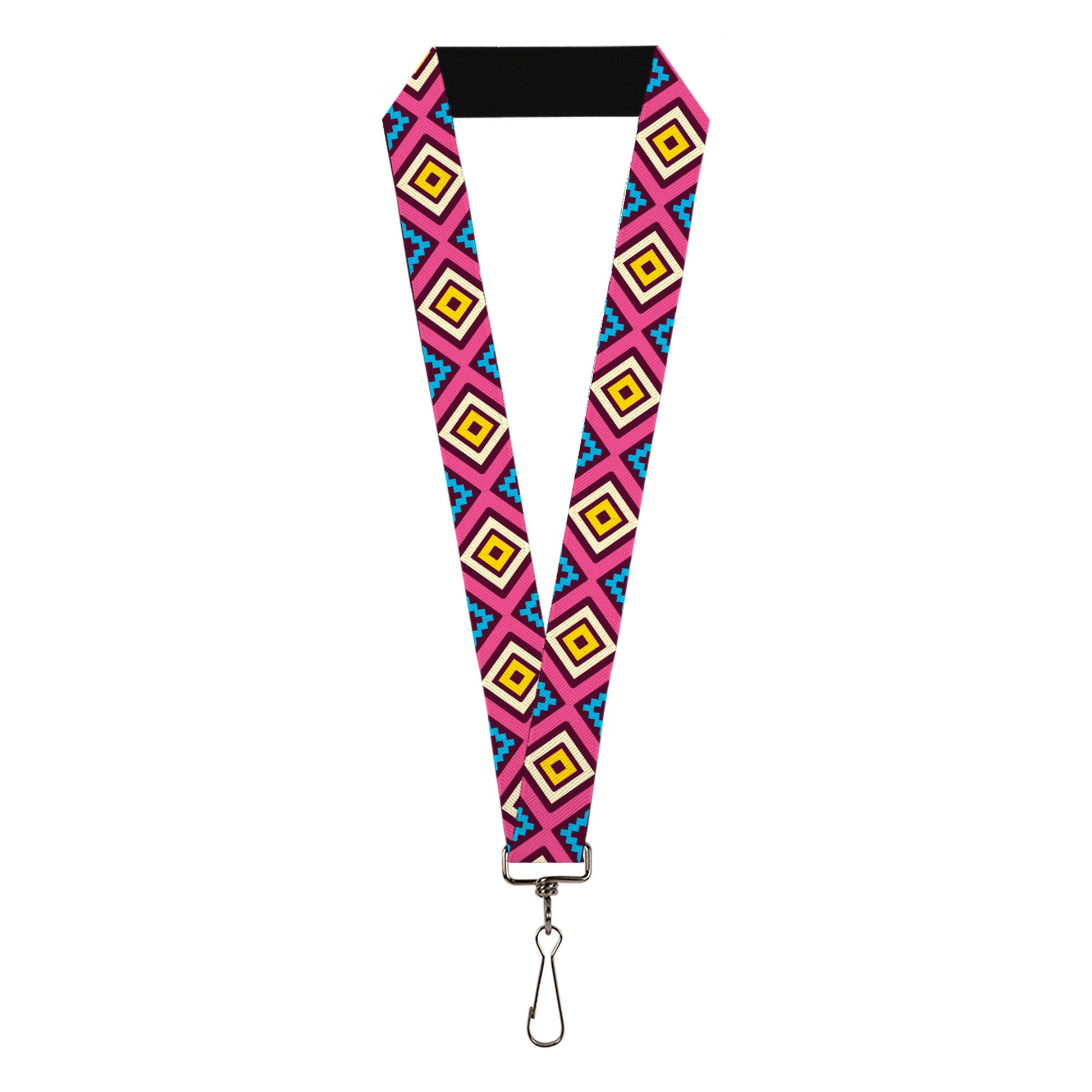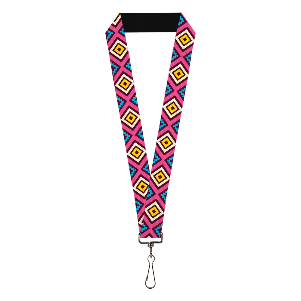 Lanyard - 1.0" - Geometric1 Burgundy Pink Tan Yellow Baby Blue