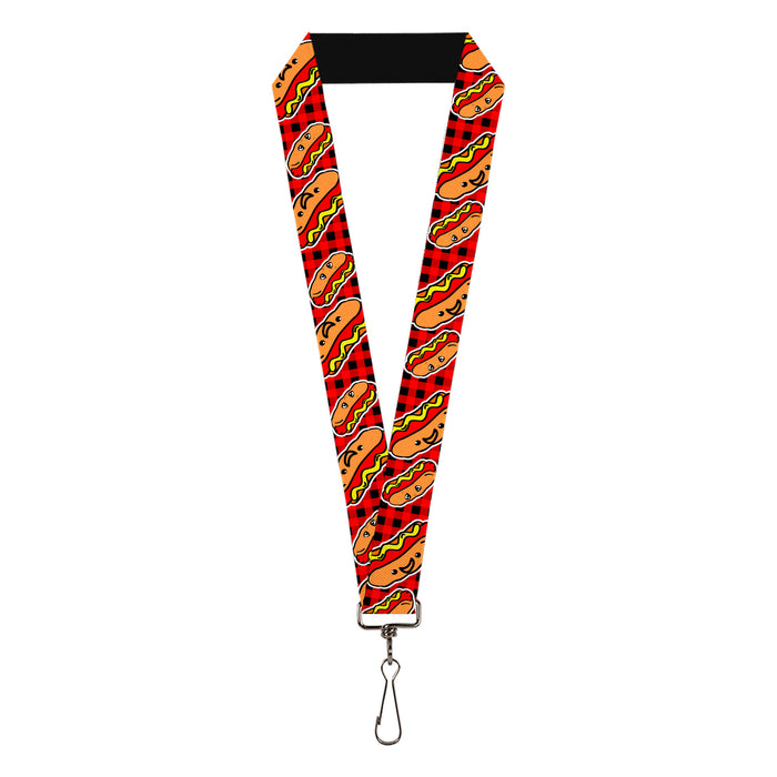 Lanyard - 1.0" - Hot Dogs Buffalo Plaid Black Red