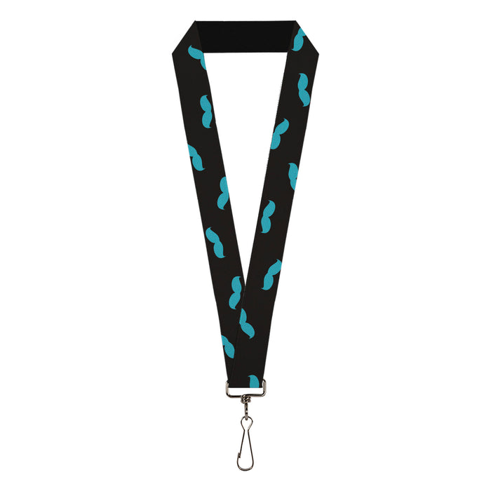 Lanyard - 1.0" - Mustaches Scattered Black Turquoise