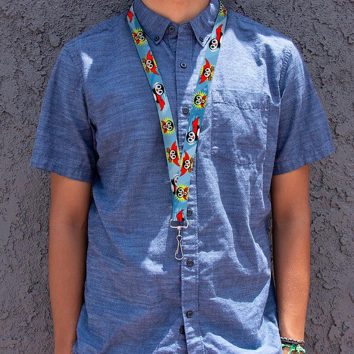 Lanyard - 1.0" - Penguin Superhero Blue Bubbles