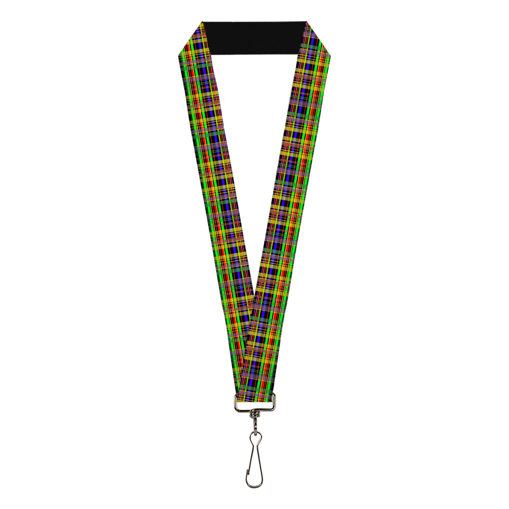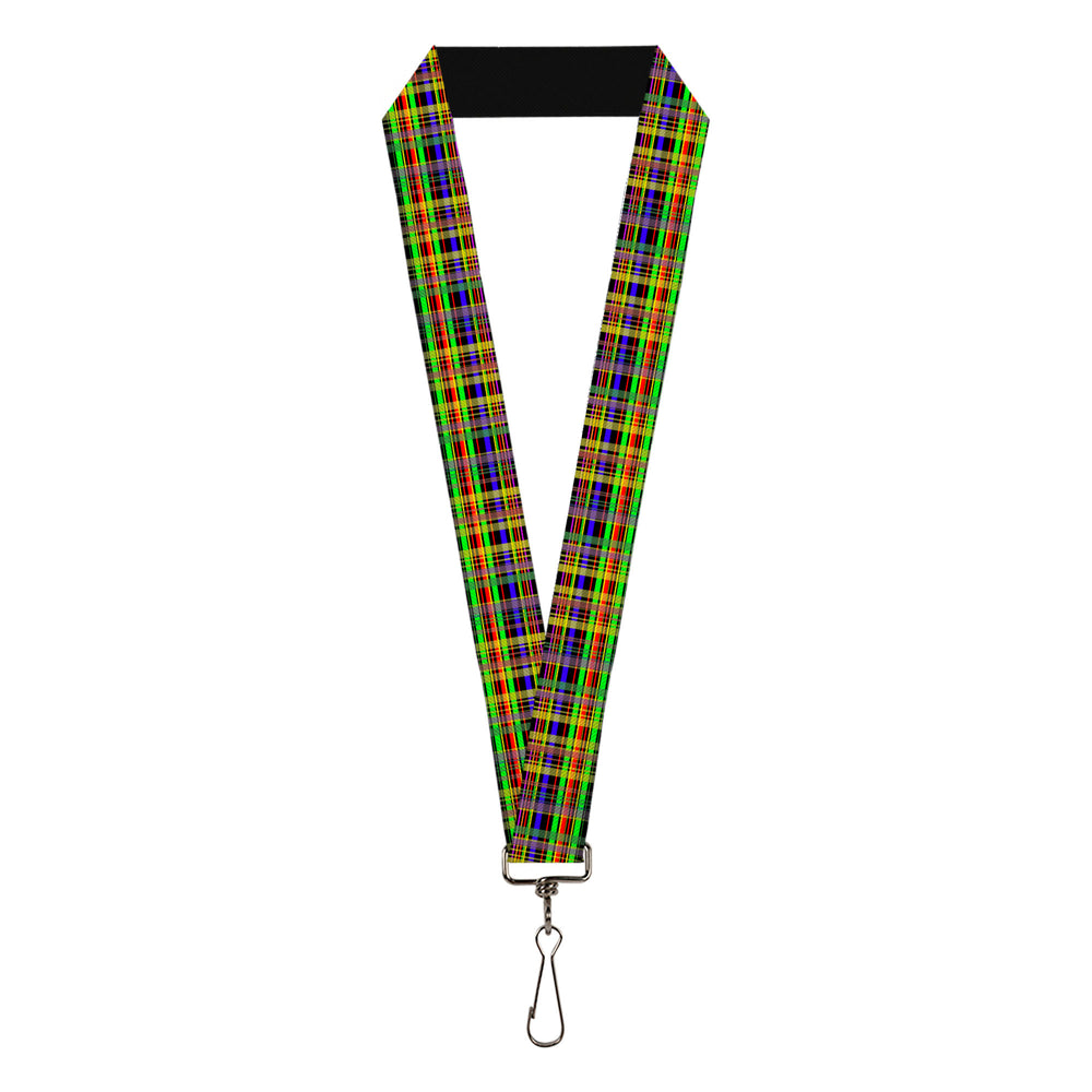 Lanyard - 1.0" - Plaid Black Multi Neon