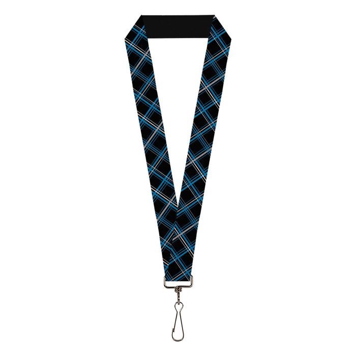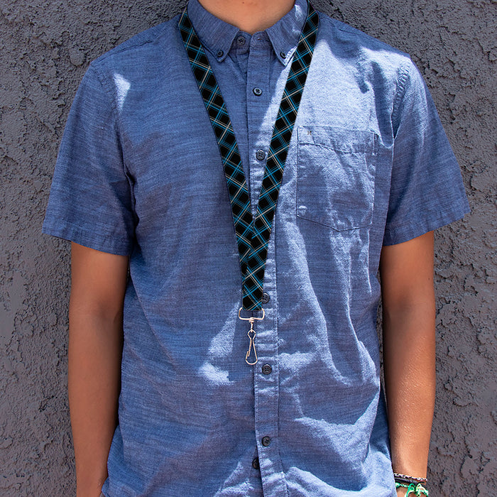Lanyard - 1.0" - Plaid Black Turquoise Gray