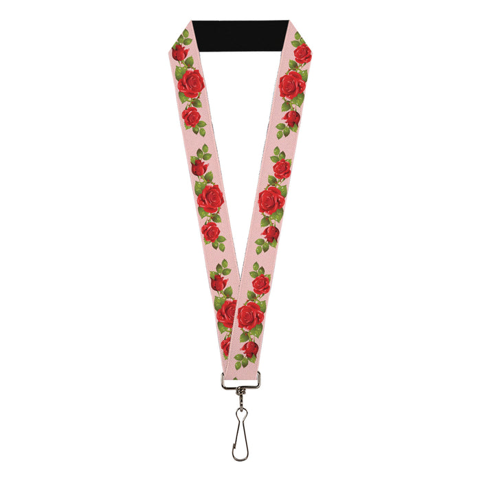 Lanyard - 1.0" - Rose Trio Leaves Pink