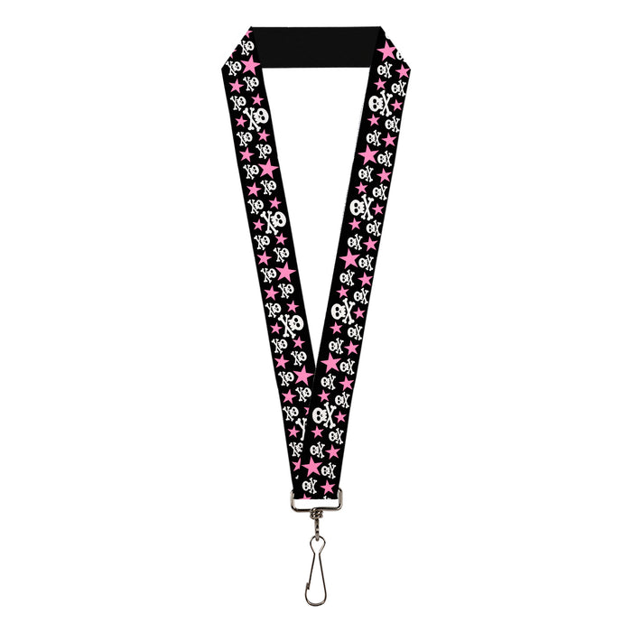 Lanyard - 1.0" - Skulls & Stars Black White Pink