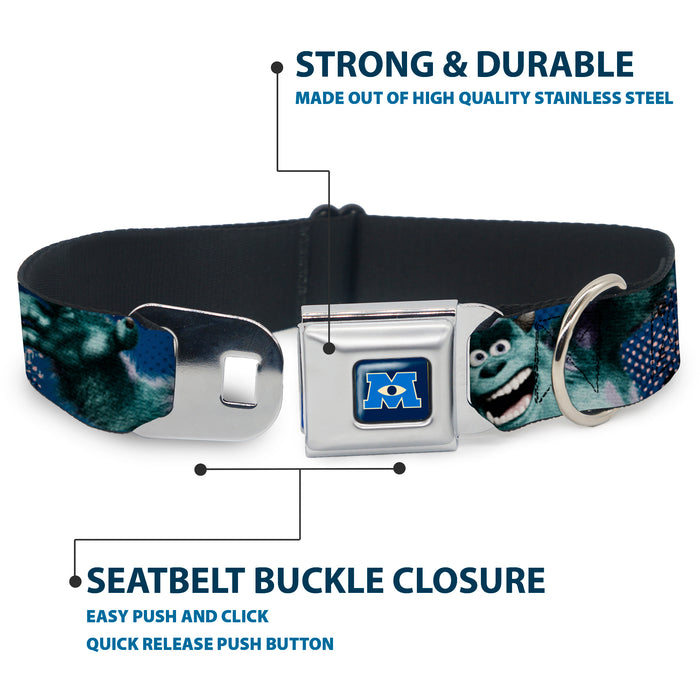 Monsters University Logo Full Color Blue White Seatbelt Buckle Collar - Sulley Scare Pose/Dots Blues/White