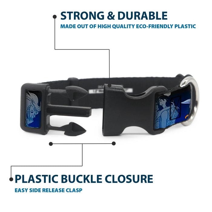 Vibrant and bold, this beautiful, polyester dog collar is made to show off your dog's unique style through all the seasons. With an overengineered plastic buckle and strong D-ring, this durable collar can hold up to whatever your dog can dish out. This product is officially licensed by Disney.