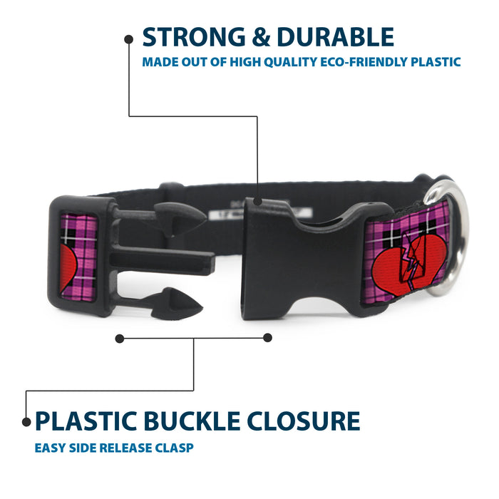 Plastic Clip Collar - Broken Hearts & Roses w/Fuchsia Plaid
