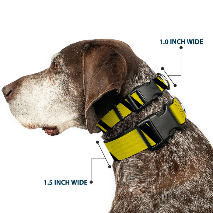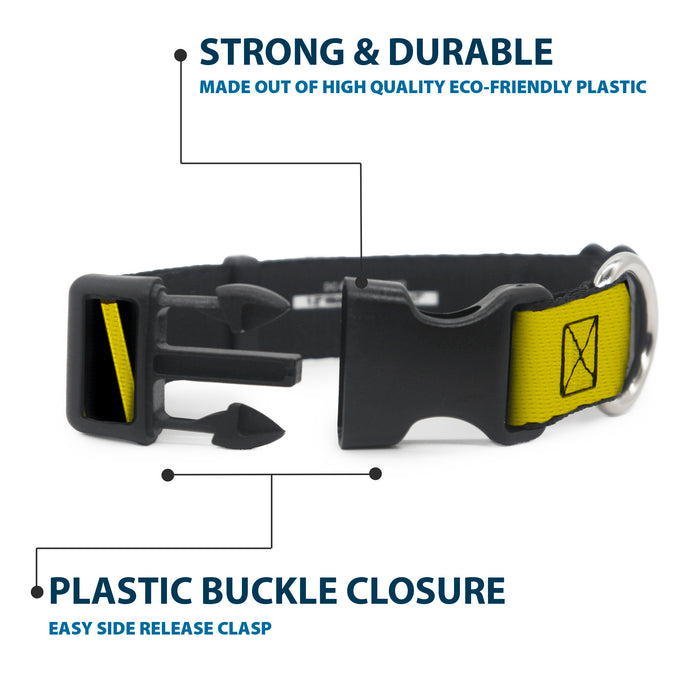 Vibrant and bold, this beautiful, polyester dog collar is made to show off your dog's unique style through all the seasons. With an overengineered plastic buckle and strong D-ring, this durable collar can hold up to whatever your dog can dish out. This product is officially licensed by Buckle-Down.