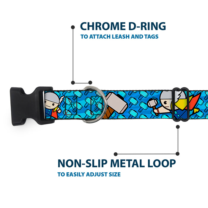 Plastic Clip Collar - Kawaii Thor Poses/Hammer Monogram Blues