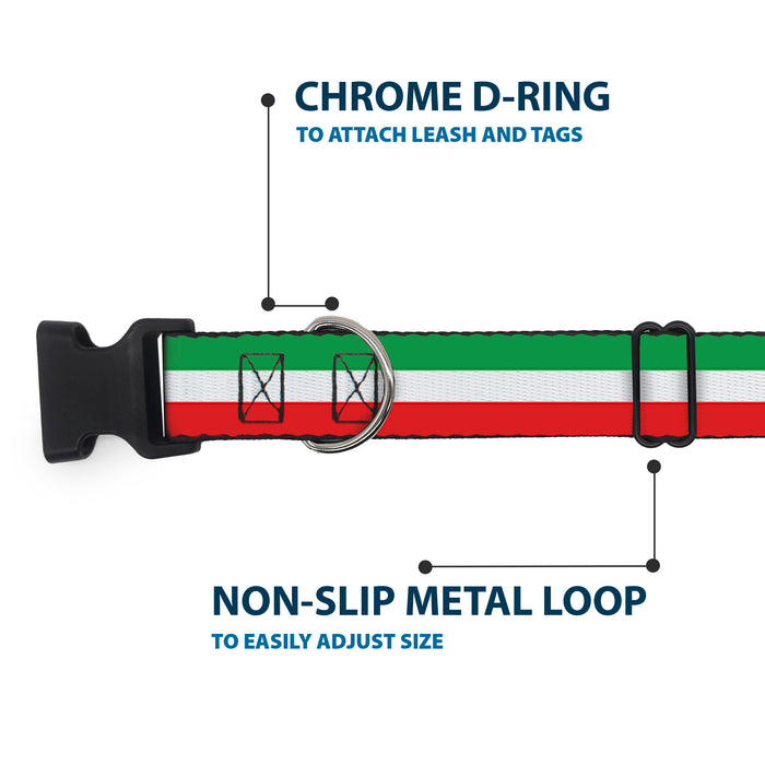 Vibrant and bold, this beautiful, polyester dog collar is made to show off your dog's unique style through all the seasons. With an overengineered plastic buckle and strong D-ring, this durable collar can hold up to whatever your dog can dish out. This product is officially licensed by Buckle-Down.