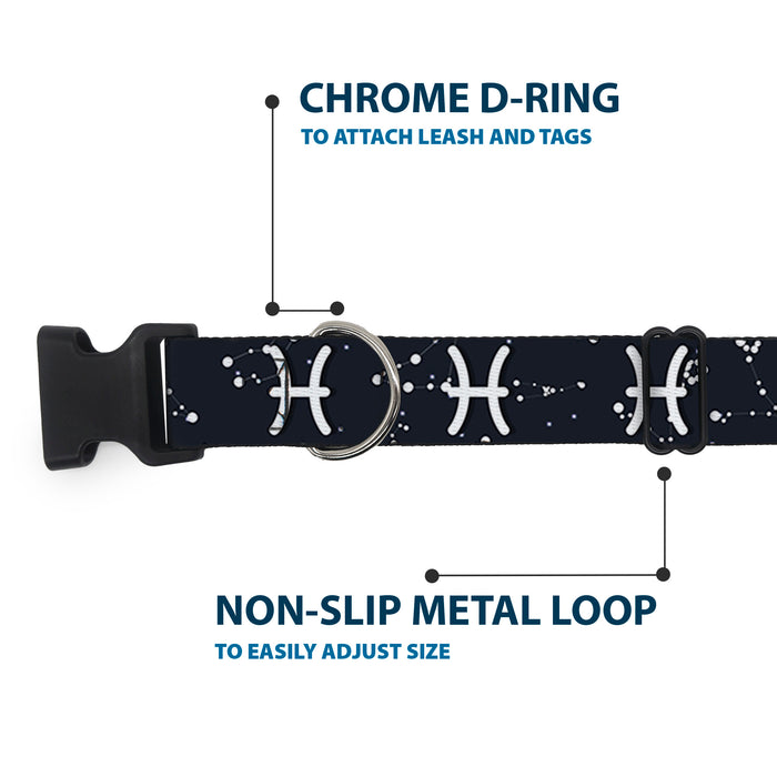 Plastic Clip Collar - Zodiac Pisces Symbol/Constellations Black/White
