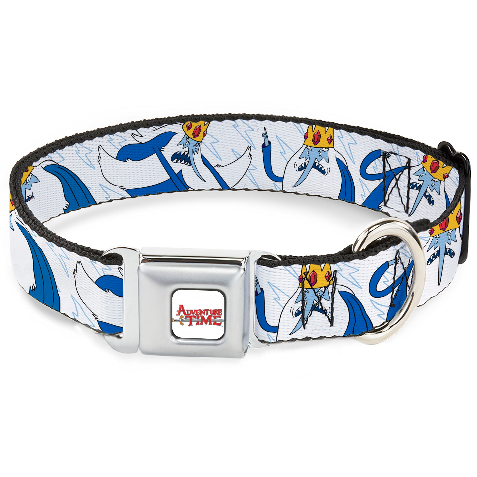 ADVENTURE TIME Title Logo Full Color White Seatbelt Buckle Collar - Adventure Time Marceline's Axe Bass Guitar Scattered Gray