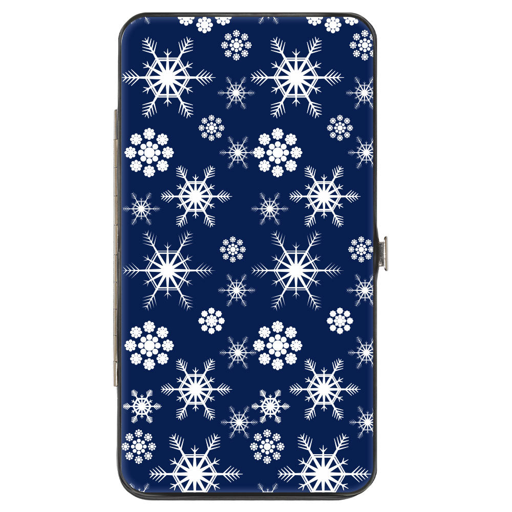 Hinged Wallet - Snowflakes Blue White