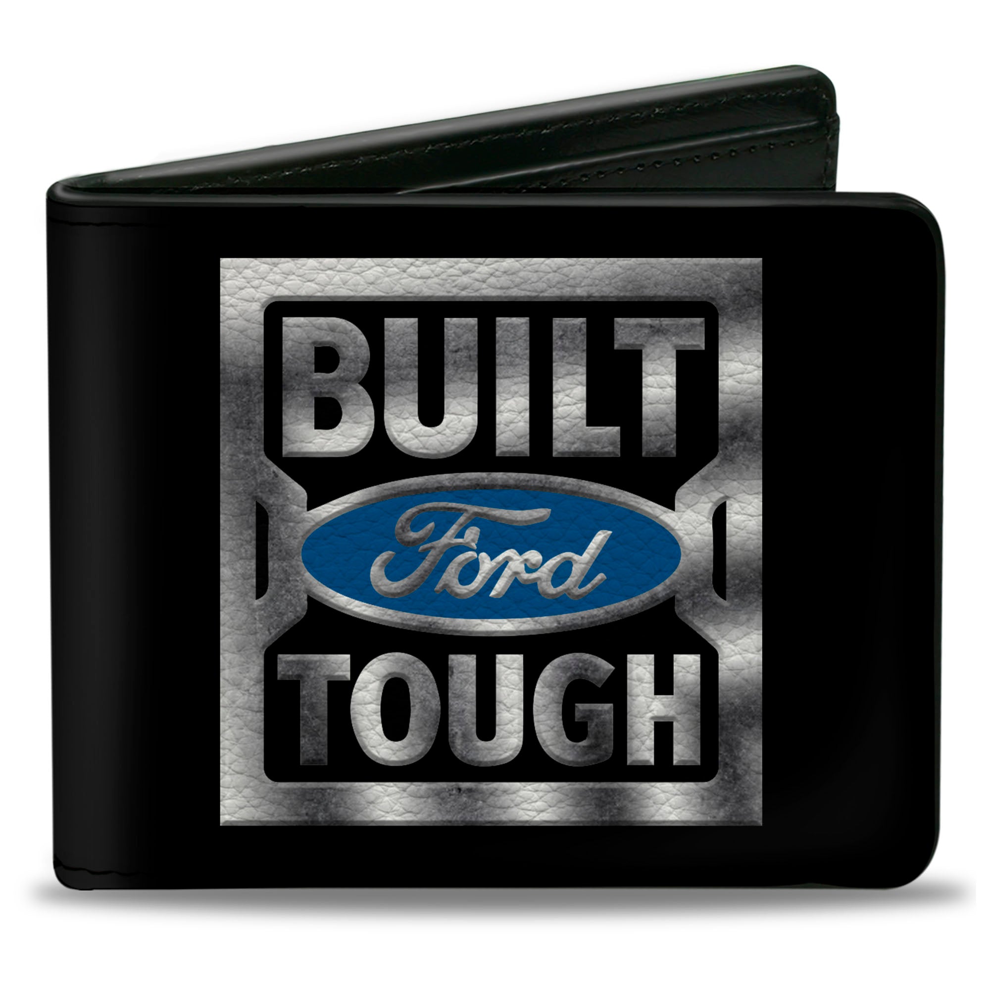 Bi-Fold Wallet - BUILT FORD TOUGH Logo3 Black Silver Gradient Blue