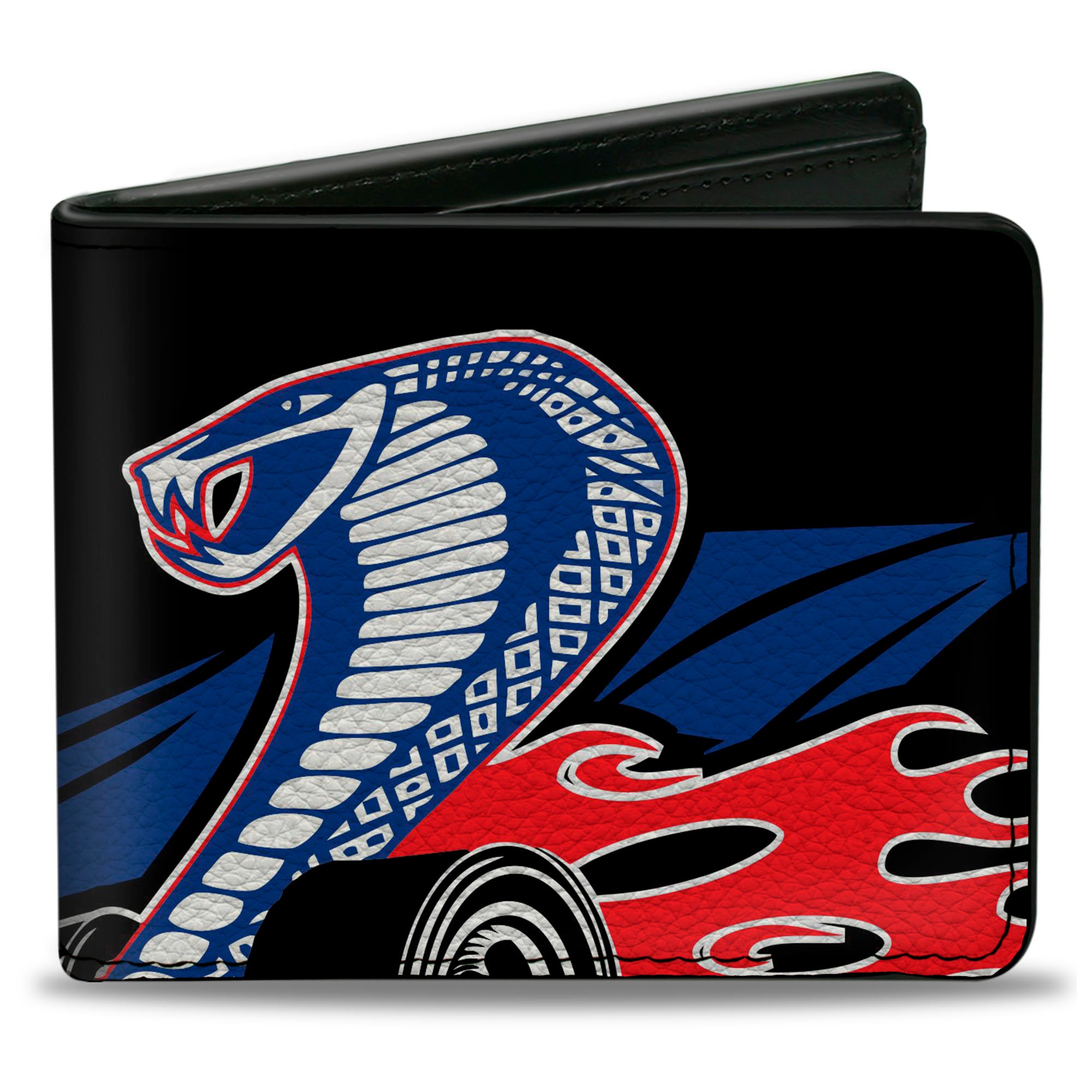 Bi-Fold Wallet - Flaming Cobra Jet Black Blue White Red
