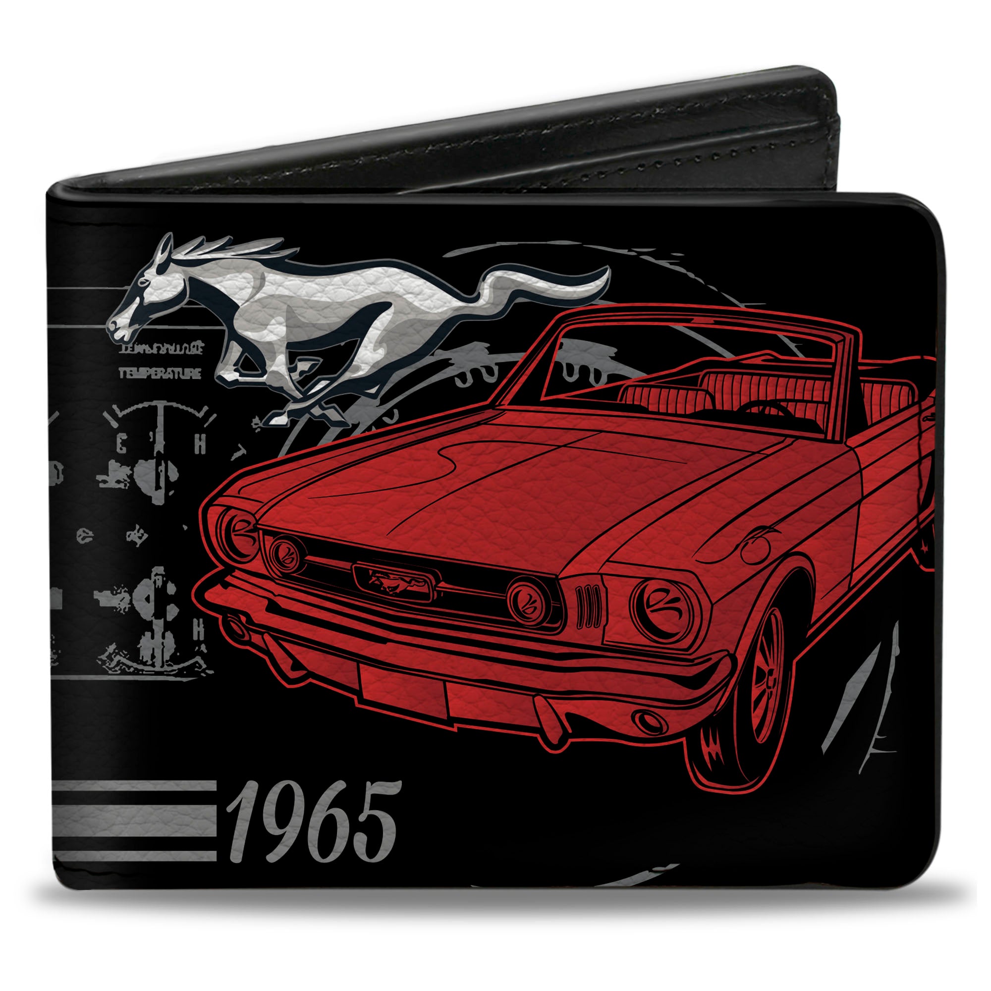 Bi-Fold Wallet - Ford Mustang 1965 Control Panel Black Silver Red