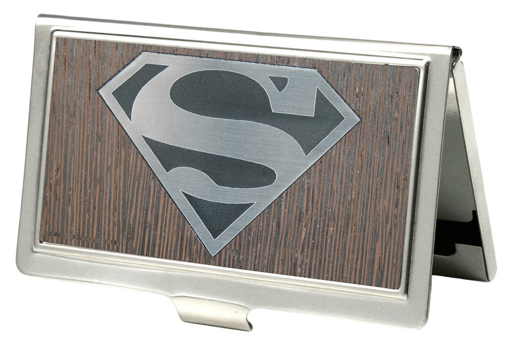 Tarjetero - PEQUEÑO - Superman Logo Marquetería Metal Nogal Negro