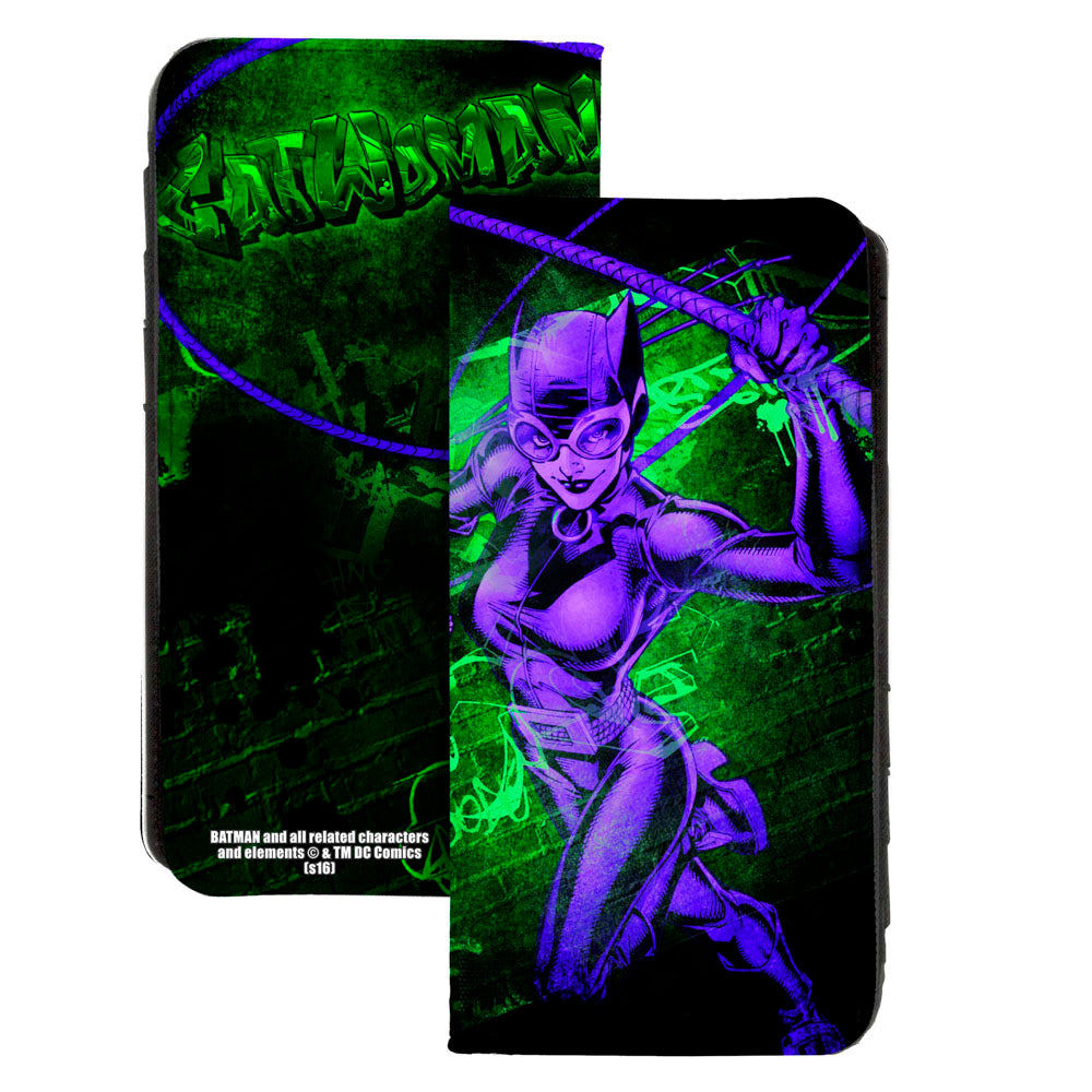 Cartera Snap de Lona - CATWOMAN Whip Pose Graffiti Negro Verdes Púrpuras