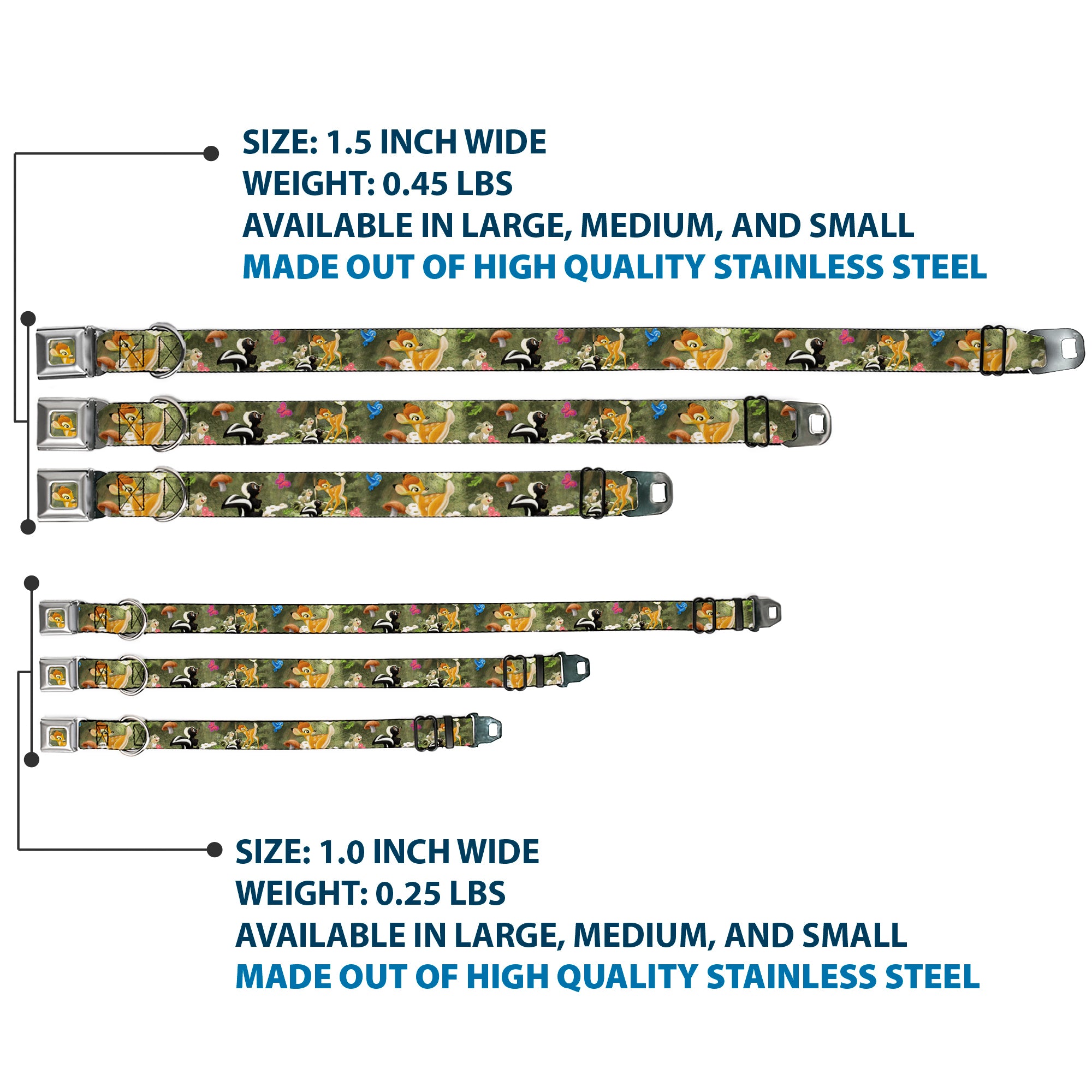 Bambi Face CLOSE-UP Full Color Gray Seatbelt Buckle Collar - Bambi & Friends Scene