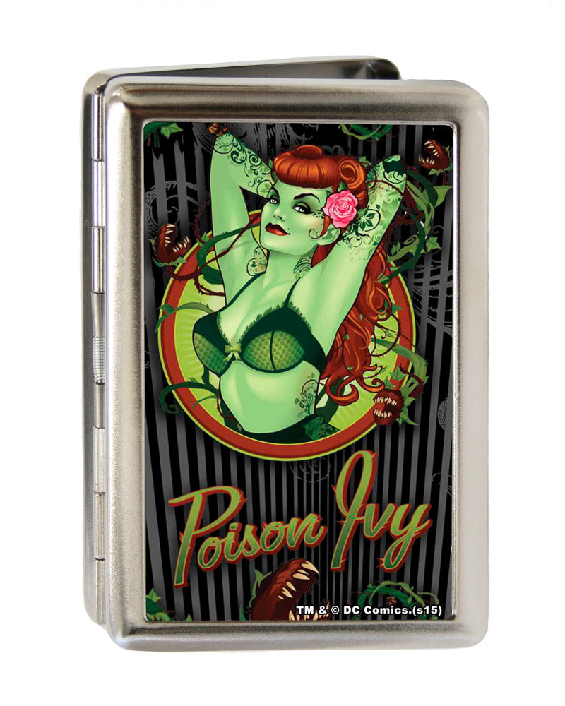 Business Card Holder - LARGE - POISON IVY Bombshell Pose Stripe FCG Black Gray Greens Reds