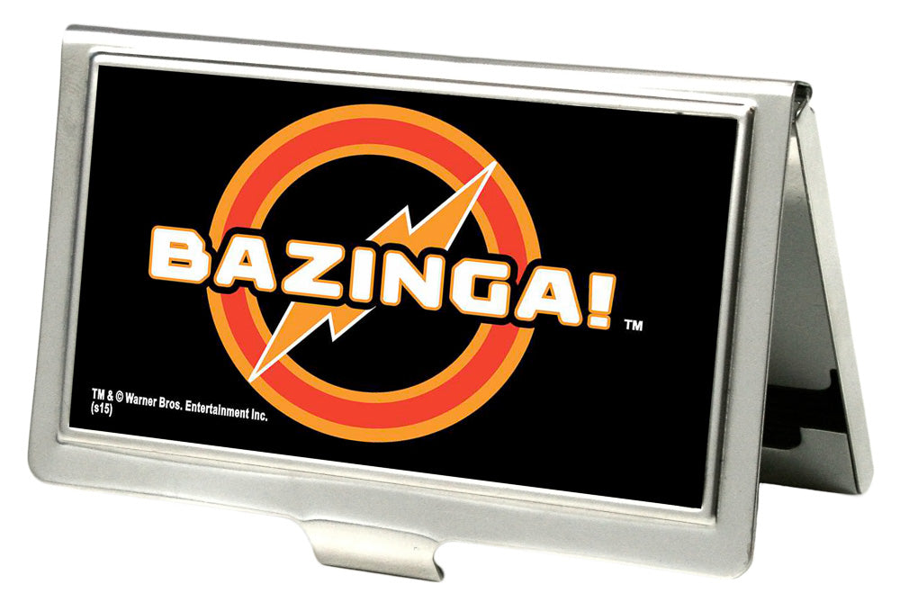 This business card holder is an awesome way to carry around cash, cards, and identification. Slim and sleek, this steel business card holder measures 3.5x2.25x0.35 Inches, and easily fits in pockets or bags. This product is Made in the USA by Buckle-Down Inc. and Officially Licensed by The Big Bang Theory.