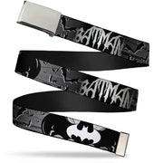 Chrome Buckle Web Belt - BATMAN w/Bat Signals & Flying Bats Black/White Webbing