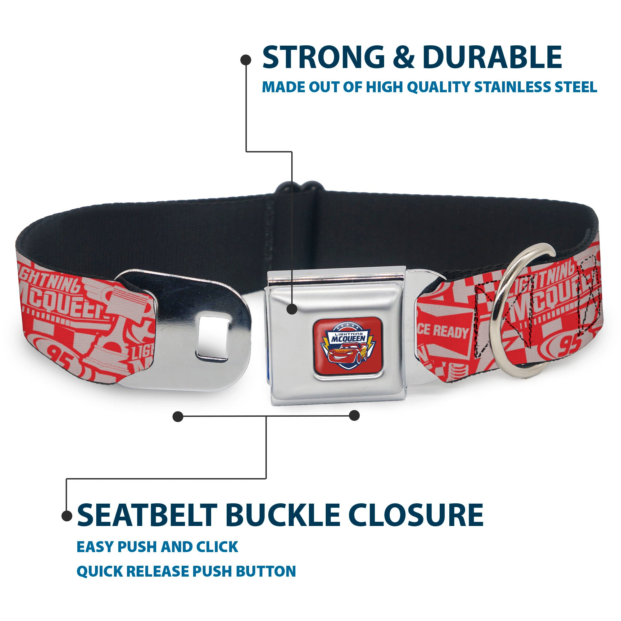 Disney CARS Seatbelt Buckle Collar - Cars 3 LIGHTNINING MCQUEEN Icons Collage White/Red
