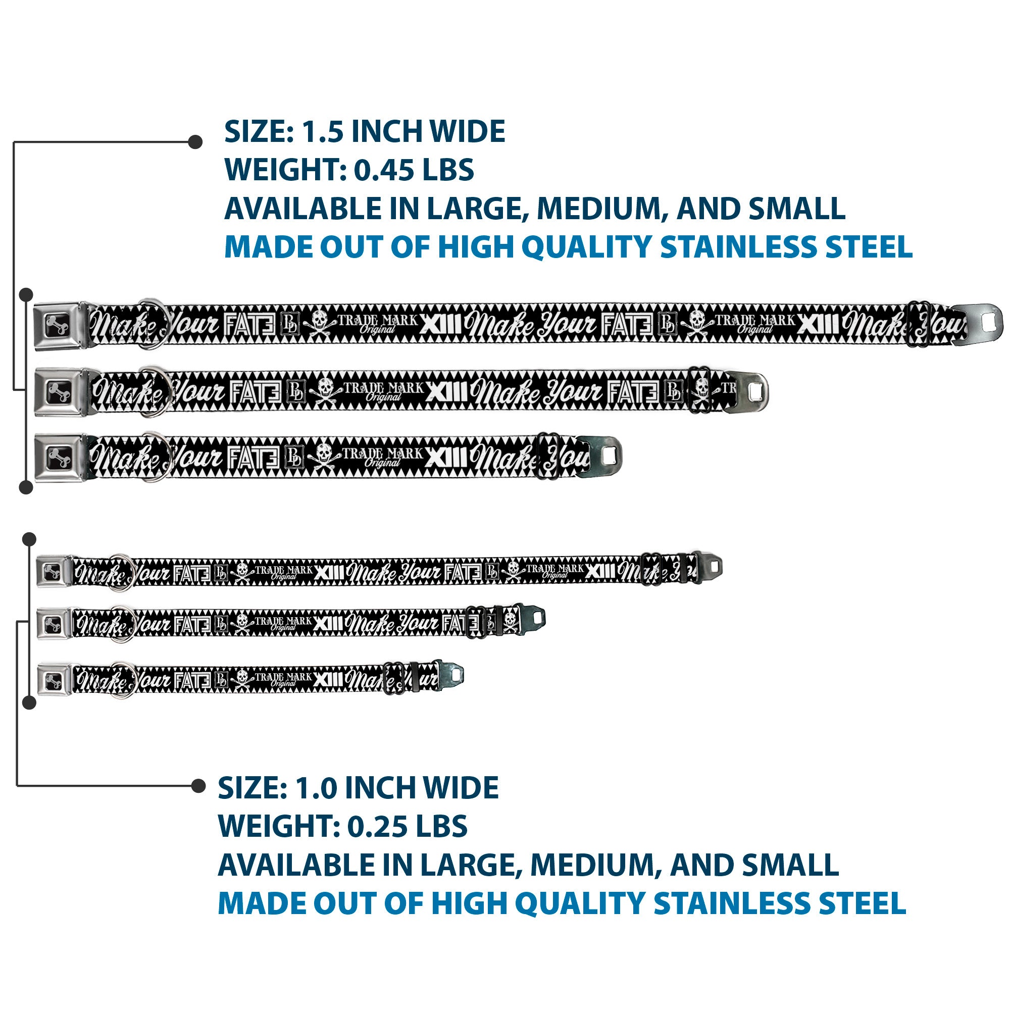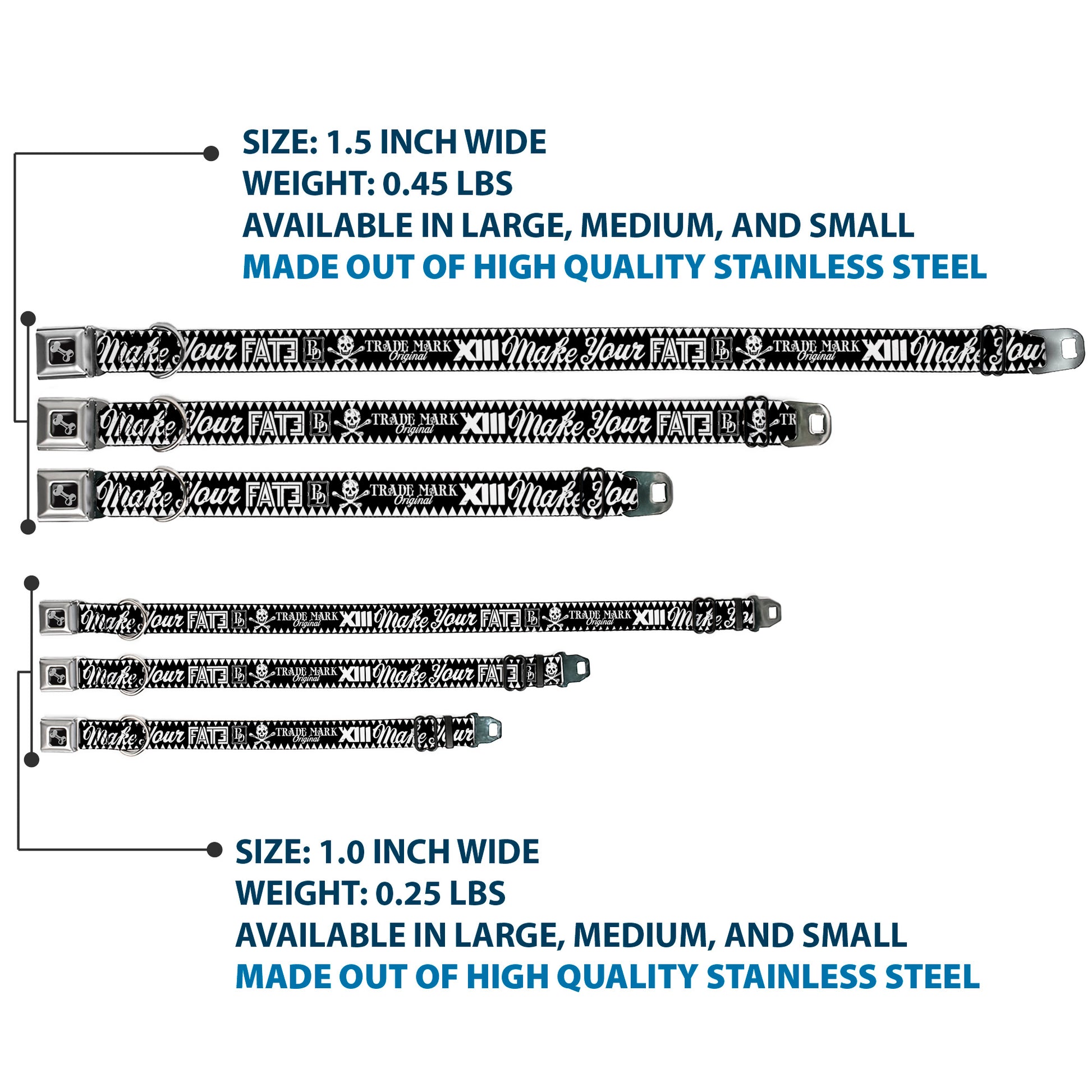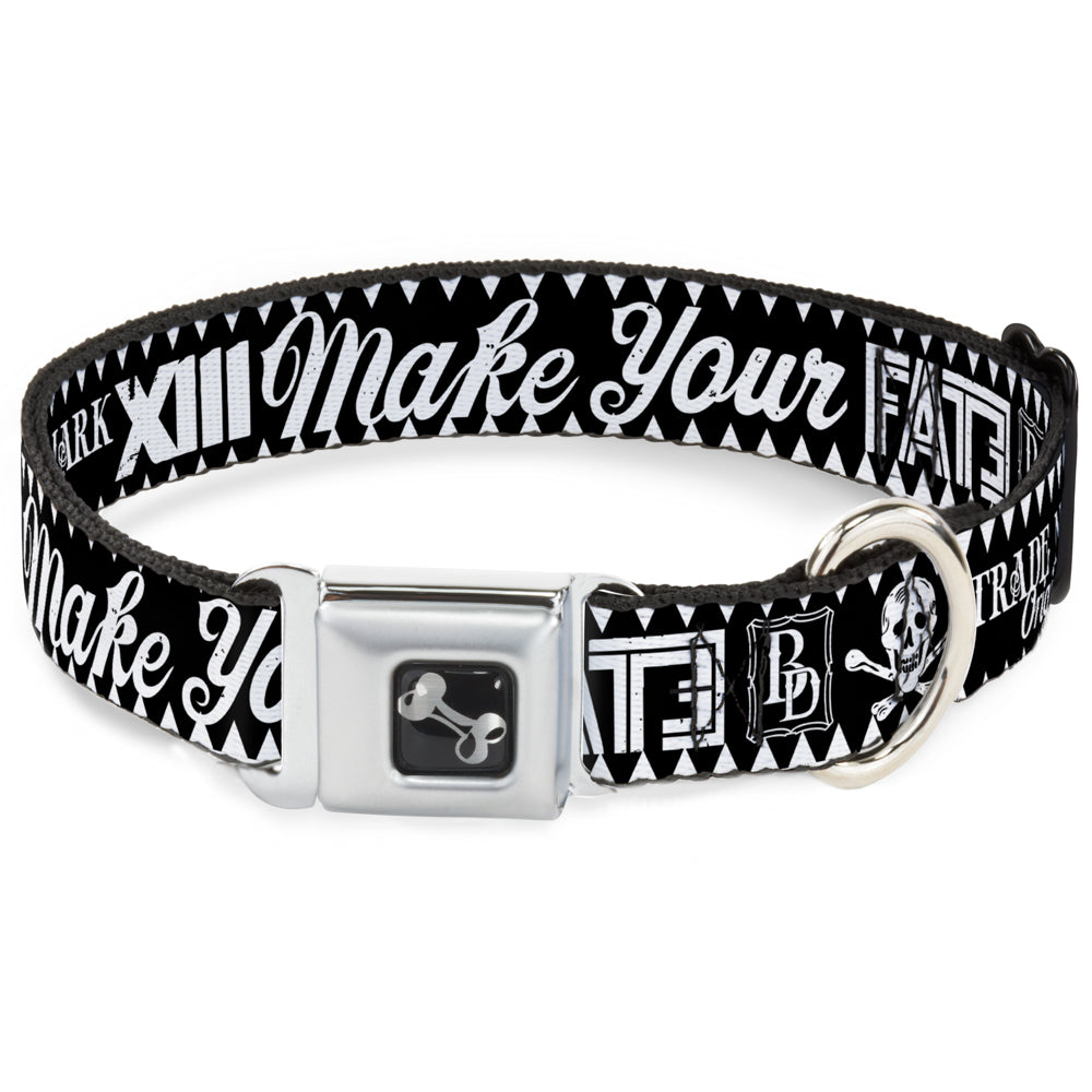 Dog Bone Seatbelt Buckle Collar - BD Skull MAKE YOUR FATE Black/White