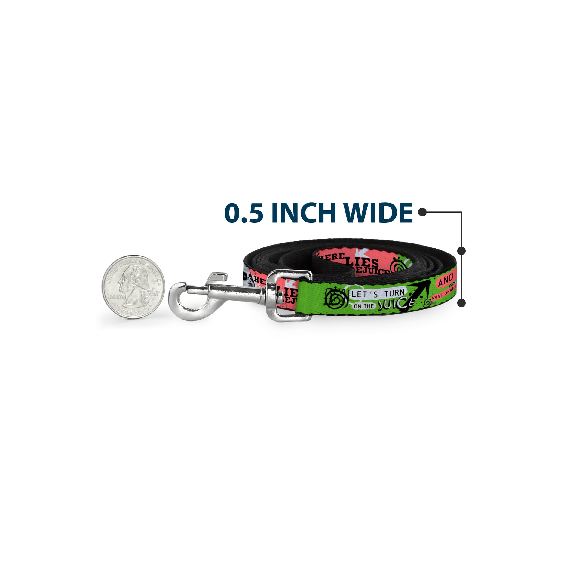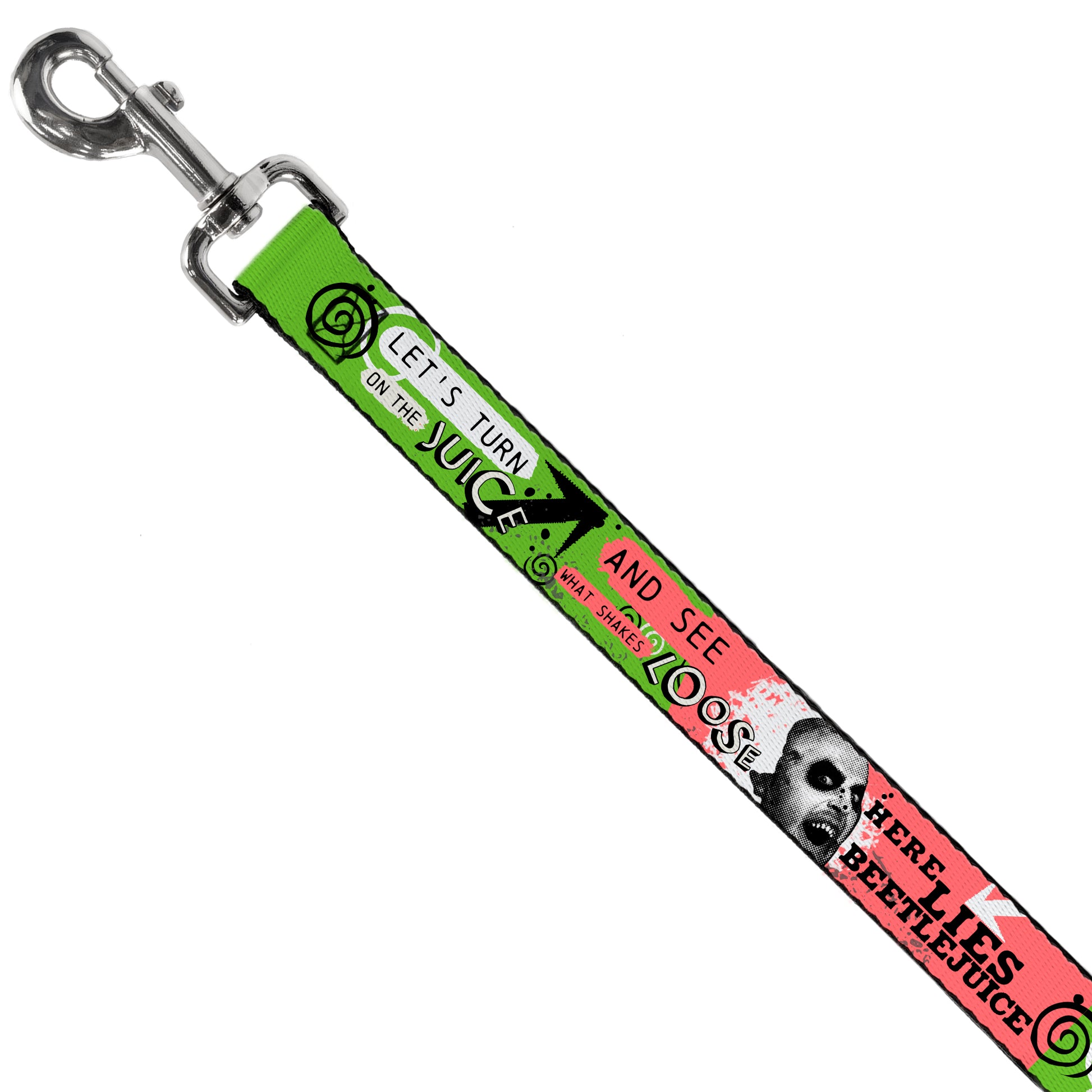 Dog Leash - BEETLEJUICE Face and Quotes Collage Pink/Green/Black