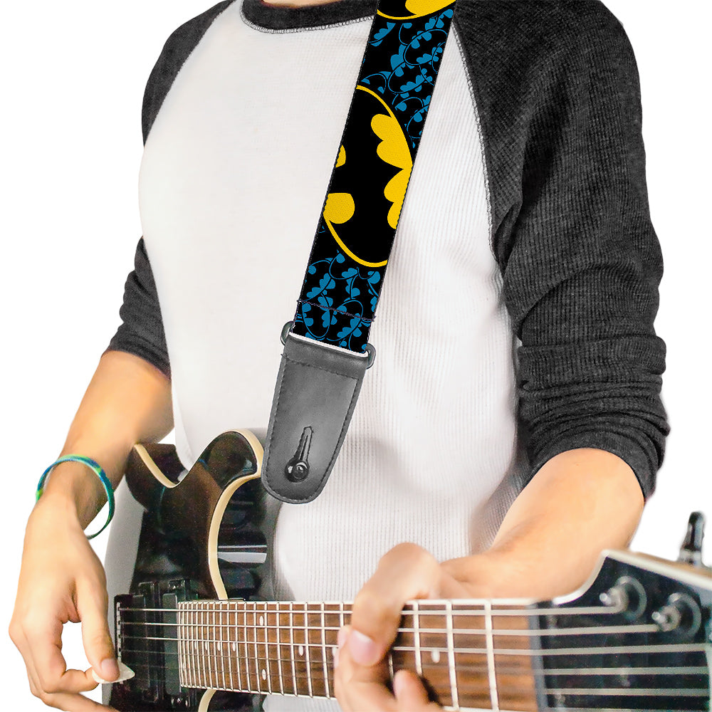 Guitar Strap - Bat Signals Stacked w C U Blue Black Yellow