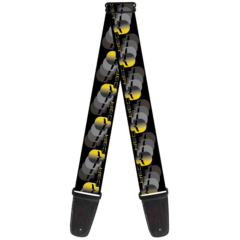 Guitar Strap - C6 Racing w Skull Repeat Black Yellow Silver
