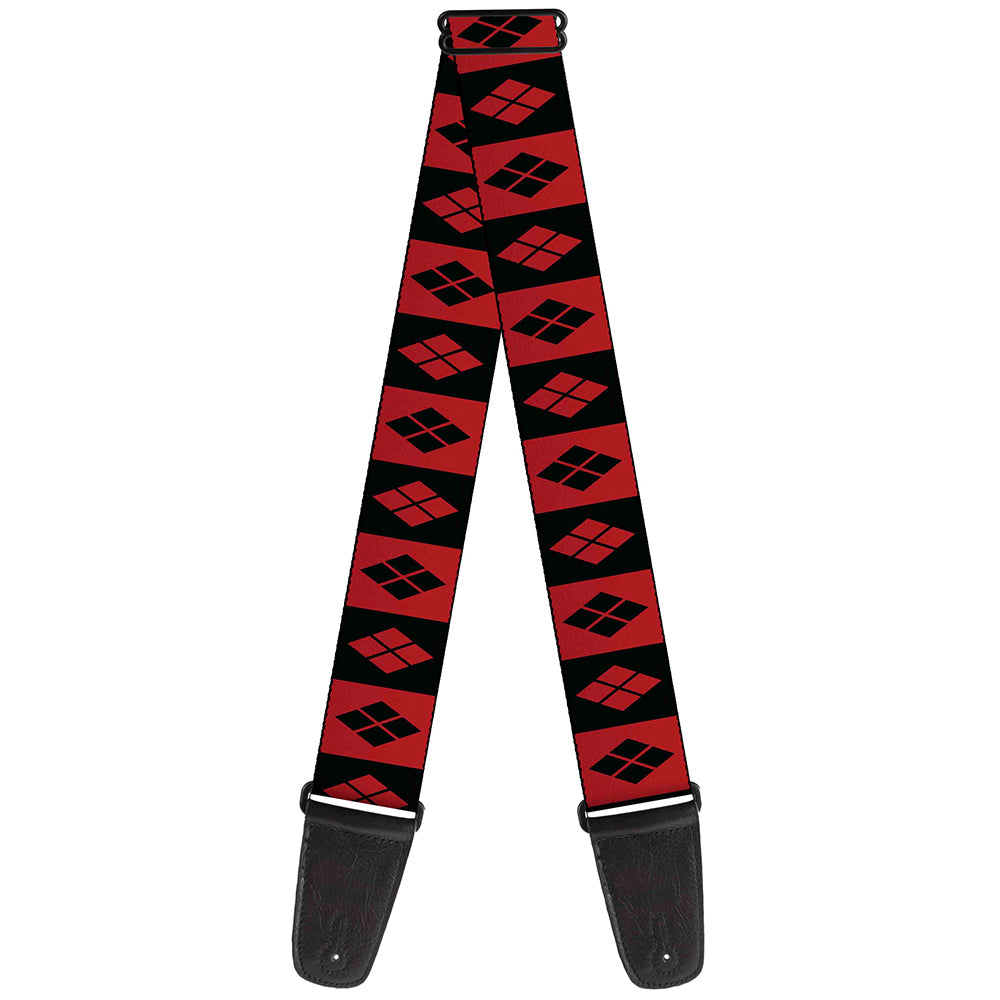 Guitar Strap - Harley Quinn Diamond Blocks Red Black Black Red
