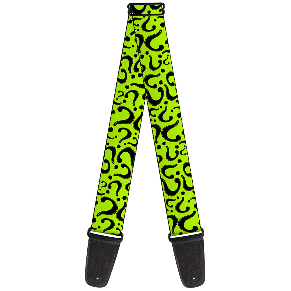 Guitar Strap - Question Mark Scattered Lime Green Black