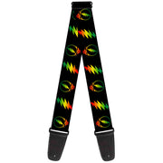 Guitar Strap - Steal Your Face w Lightning Bolt Repeat Black Rasta