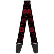 Guitar Strap - Supernatural Symbols Scattered Black Red
