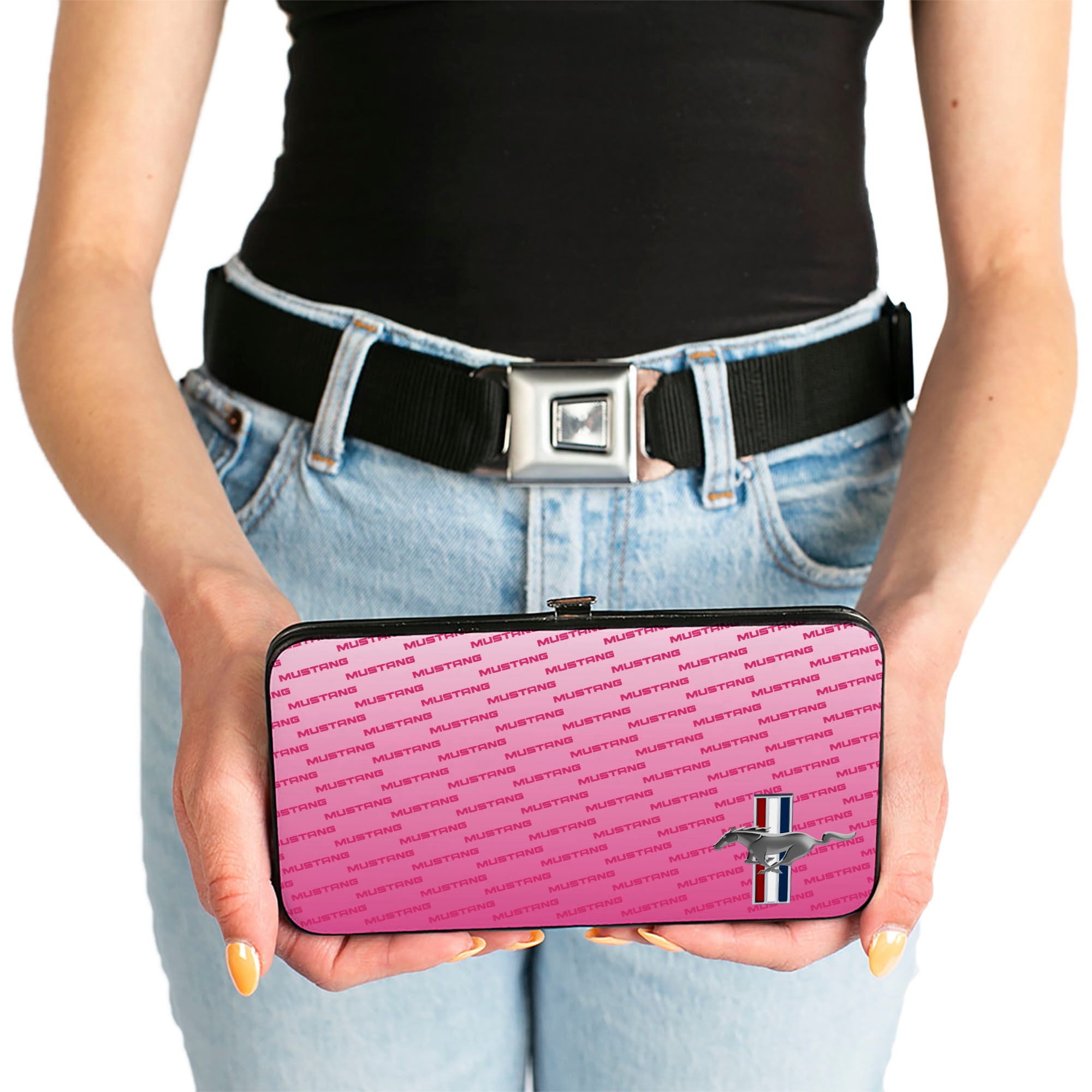Hinged Wallet - Ford Mustang w Bars CORNER w Text PINK