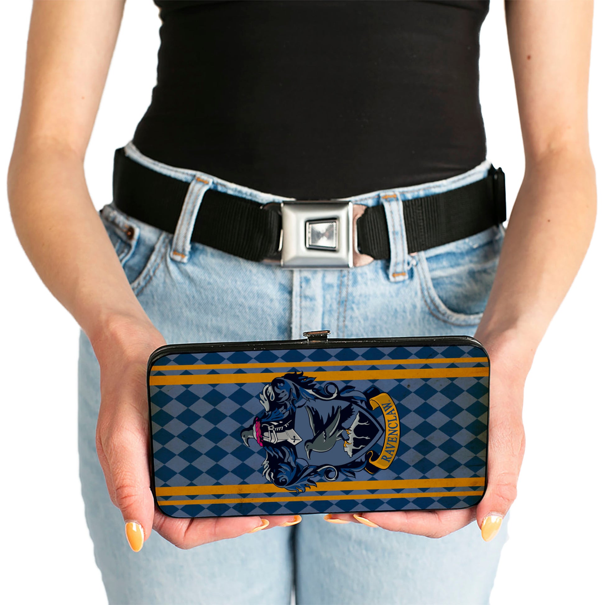 Hinged Wallet - RAVENCLAW Crest Stripes Diamonds Blues Gold