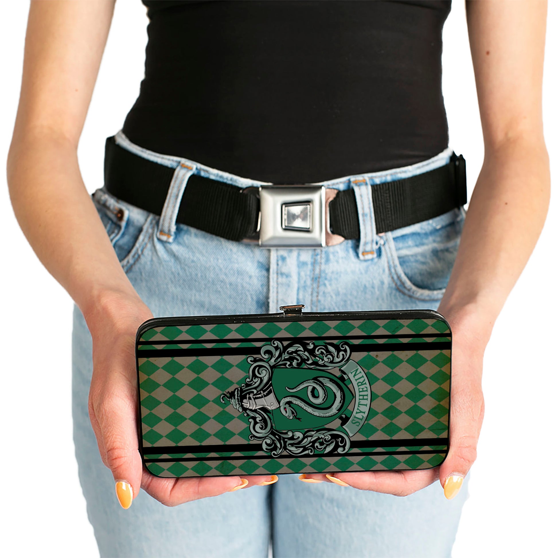 Hinged Wallet - SLYTHERIN Crest Stripes Diamonds Greens Black