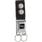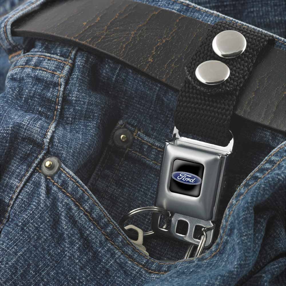 This nifty keychain comes equipped with an authentic SeatBelt Buckle clasp. You can anchor it to a belt loop or bag with two stainless steel snaps and conveniently detach your keys by pressing the center button. The keychain measures 3.0x1.0x0.5 Inches, and is made from nylon and stainless steel. This product is Made in USA by Buckle-Down Inc. and Officially Licensed by Ford.