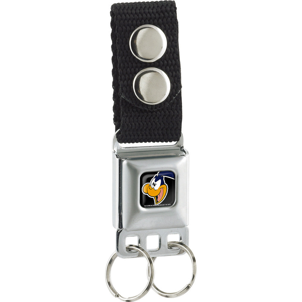 This nifty keychain comes equipped with an authentic SeatBelt Buckle clasp. You can anchor it to a belt loop or bag with two stainless steel snaps and conveniently detach your keys by pressing the center button. The keychain measures 3.0x1.0x0.5 Inches, and is made from nylon and stainless steel. This product is Made in USA by Buckle-Down Inc. and Officially Licensed by Looney Tunes.