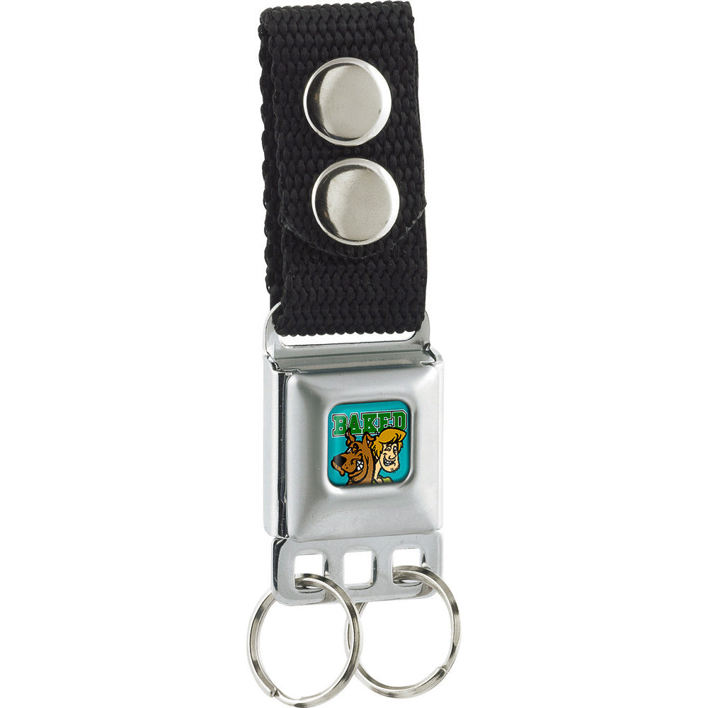 This nifty keychain comes equipped with an authentic SeatBelt Buckle clasp. You can anchor it to a belt loop or bag with two stainless steel snaps and conveniently detach your keys by pressing the center button. The keychain measures 3.0x1.0x0.5 Inches, and is made from nylon and stainless steel. This product is Made in USA by Buckle-Down Inc. and Officially Licensed by Scooby Doo.