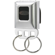 This nifty keychain is equipped with an authentic SeatBelt Buckle clasp. You can anchor it to a belt loop or bag with a metal clasp on the back and conveniently detach your keys by pressing the center button. This keychain measures 3.0x2.0x1.0 Inches, and is made from chrome-plated steel components. SeatBelt Keychain with functional SeatBelt release mechanism! This patented (D542,523) keychain is made by Buckle-Down and is officially licensed by Ford.