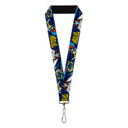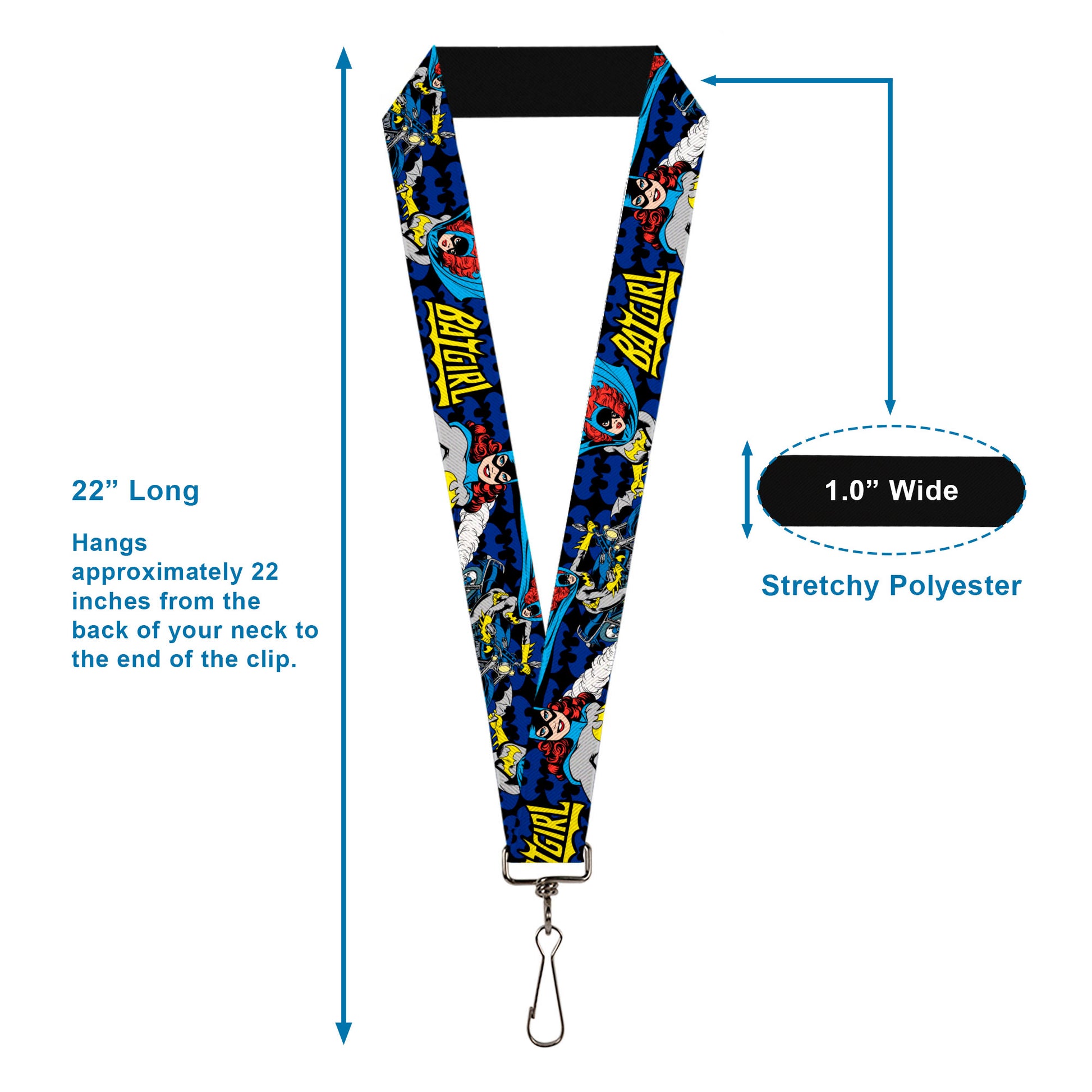 Lanyard - 1.0" - BATGIRL Action Poses Bat Logo Black Blue Yellow